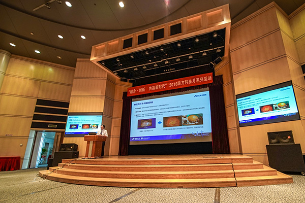 7月20日下午,秉承著融合、創新共贏新時代的理念,同方鼎欣作為同方健康產業布局內醫療信息化板塊的代表企業,與同方大健康行業的眾多行業專家、學者、企業家共聚同方科技廣場,回顧產業發展歷程,共同探討醫療健康的產業挑戰和機遇。論壇的議題包羅萬象,涵蓋了清藥同創吳博士的新藥研發成果、清華大學藥學院張博士的免疫治療領域的真知灼見,以及同方健康潘總的大健康管理解決方案、同方全球人壽的健康險發展思考。同方鼎欣作為醫療行業內從業近二十年的軟件開發、技術服務與解決方案提供商,公司副總裁江威先生以國內醫療信息化為背景,就影像處理技術在醫療領域的應用,深入淺出、理論結合實際地為產業同仁解釋了同方鼎欣自主研發的影像技術是如何在醫學診療、手術導航、醫學教學等領域創新落地的。