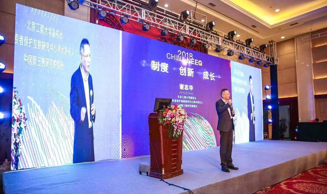 2018年10月19日,第二屆中國新三板年度風(fēng)云榜暨投資者保護(hù)指數(shù)發(fā)布會在京成功舉辦。會議此次活動由證券資訊頻道《聚焦新三板》欄目、北京工商大學(xué)商學(xué)院投資者保護(hù)研究中心、京津高村科技創(chuàng)新園、中國新三板研究院(北京華財會計股份有限公司)等機(jī)構(gòu)共同發(fā)起。活動現(xiàn)場,來自全國股轉(zhuǎn)系統(tǒng)、投資界、金融界、學(xué)術(shù)界、科技園區(qū)、知名新三板自媒體等機(jī)構(gòu)領(lǐng)導(dǎo)和同仁代表一同出席。300余家新三板企業(yè)及投資機(jī)構(gòu)在現(xiàn)場交流,這是新三板優(yōu)質(zhì)企業(yè)的一次思維碰撞,更是一場投資者暢談未來趨勢的研討盛會。