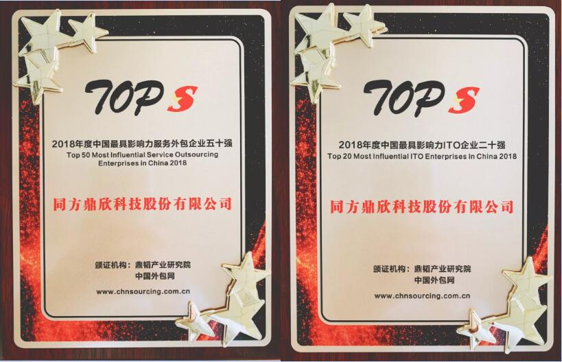 隨著服務貿易不斷轉型升級,信息技術的高速發展,以及我國經濟的轉型升級和“一帶一路”戰略的不斷深入推進,服務業不斷向高技術、高附加值、高品質、高效益產業轉型升級中。 近日,IT服務行業老牌企業同方鼎欣再創佳績,同時入圍2018年度中國最具影響力ITO企業二十強(ITO TOP20)、2018年度中國最具影響力服務外包企業五十強(TOP50)。這是繼2018年以來,公司進擊中國最具影響力企業的第二個連冠,不但彰顯了其專注IT行業領域20多年練就的深厚功底,也體現了同方鼎欣近年來不斷適應市場變化、革新業務模式帶來的顯著成效。 憑借專業、科學、客觀的評選體系和評選流程,秉承公平、公正、公開的評選原則,知名研究咨詢機構鼎韜組織旗下TOPs系列從2007年啟動至今,已經歷了十多年的探索和積累,獲得了IT業內的普遍認可。而作為我國最具影響力和權威性行業專業研究評選的Tops項目,最具影響力服務外包企業五十強及ITO企業二十強已成為國內企業參與度最高、公信力最強的年度評選。同方鼎欣本年度再度金榜題名,將成為公司以后再接再厲,持續發展和勇于創新的不竭動力。 與業務流程外包(BPO)、知識流程外包(KPO)不同,信息技術服務外包(ITO)是指發包商委托服務商向企業提供部分或全部信息技術服務功能,主要包括信息技術的系統、應用管理及技術支持的服務。鼎韜團隊評審縱觀2018年度所有參選企業歷史數據,綜合考察企業經營能力、技術研發能力、人力資源能力等多個指標,最終評選出了最具影響力ITO企業的TOP20,同方鼎欣能夠從上千家企業中脫穎而出成功入圍,充分彰顯了公司在IT服務行業中的絕佳實力。 此次同方鼎欣再獲中國最具影響力ITO企業二十強、服務外包企業五十強雙冠,是公司立足信息化技術產業賦能、促進科技服務行業改革戰略中的一環。在今后的日子里,我們將再創輝煌,以提升產品質量與服務水平為目標,繼續發揮行業帶頭作用,努力成為客戶與合作伙伴可信賴的IT解決方案模范企業。