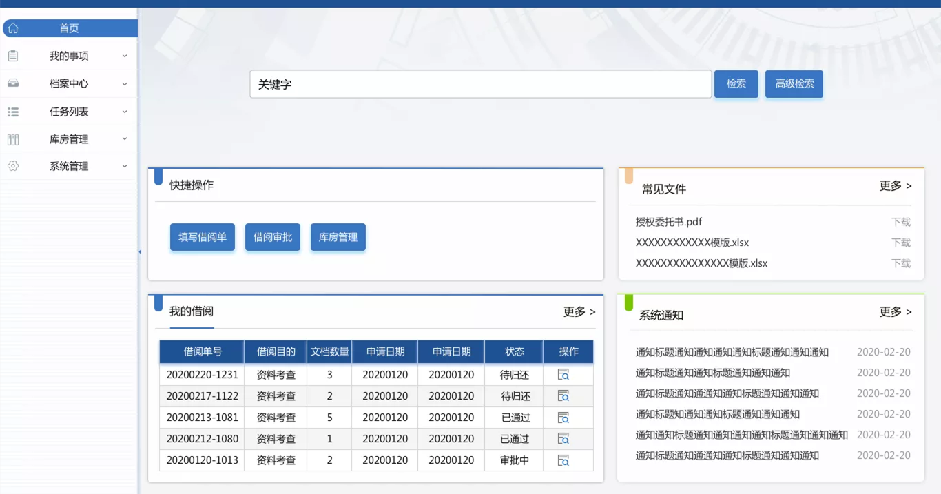 同方鼎欣云檔案管理平臺以數字資源為基礎、安全管理為保障、遠程利用為目標,實現對本單位電子文件的歸檔和管理,對傳統載體檔案數字化,各工作人員均可通過局域網、專網、互聯網利用系統內開放檔案資源,實現館藏檔案的數字化利用、開放檔案的互聯網利用、檔案信息資源深度整合加工提供利用以及庫藏電子檔案的安全保存和長期可利用,實現檔案業務“體系健全、標準統一、分級管理、資源共享、互聯互通”的目標。使數字檔案系統成為檔案保管基地、檔案利用中心,發展成電子文件管理中心、信息中心和知識中心。