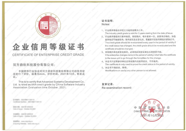 近日,經(jīng)中國軟件行業(yè)協(xié)會嚴格的審核評估,同方鼎欣順利通過了新一年度的AAA信用等級評定,再次獲得企業(yè)信用評價最高等級——“AAA級信用企業(yè)”認證。這標志著同方鼎欣在資本實力、經(jīng)營能力、經(jīng)濟效益、服務(wù)能力、產(chǎn)品質(zhì)量、管理水平等信用相關(guān)的行為、狀況和能力再次得到了全面權(quán)威的認可,也是對同方鼎欣整體綜合實力與競爭力的全面展現(xiàn)!