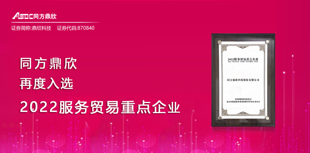 此次再度入選“2022海淀區服務貿易重點企業”推介名單,是對同方鼎欣踐行打造各行業領域數字化轉型解決方案的充分肯定和全面鼓勵。未來,鼎欣科技將繼續以自主創新和綜合服務能力不斷開拓前行,助力推進行業數字化,推動我國數字貿易產業化蓬勃發展。