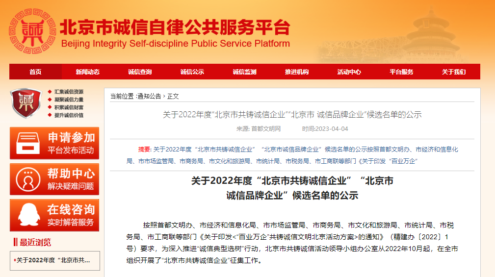 本次評審活動是對北京市共鑄誠信活動領導小組辦公室自2022年10月起在全市組織開展的“北京市共鑄誠信企業”征集工作的綜合評審,是按照首都文明辦、市經濟和信息化局、市市場監管局、市商務局、市文化和旅游局、市統計局、市稅務局、市工商聯等部門《關于印發<“百業萬企”共鑄誠信文明北京活動方案>的通知》(精建辦〔2022〕1號)要求,為深入推進“誠信典型選樹”行動而舉行的市級評審活動。