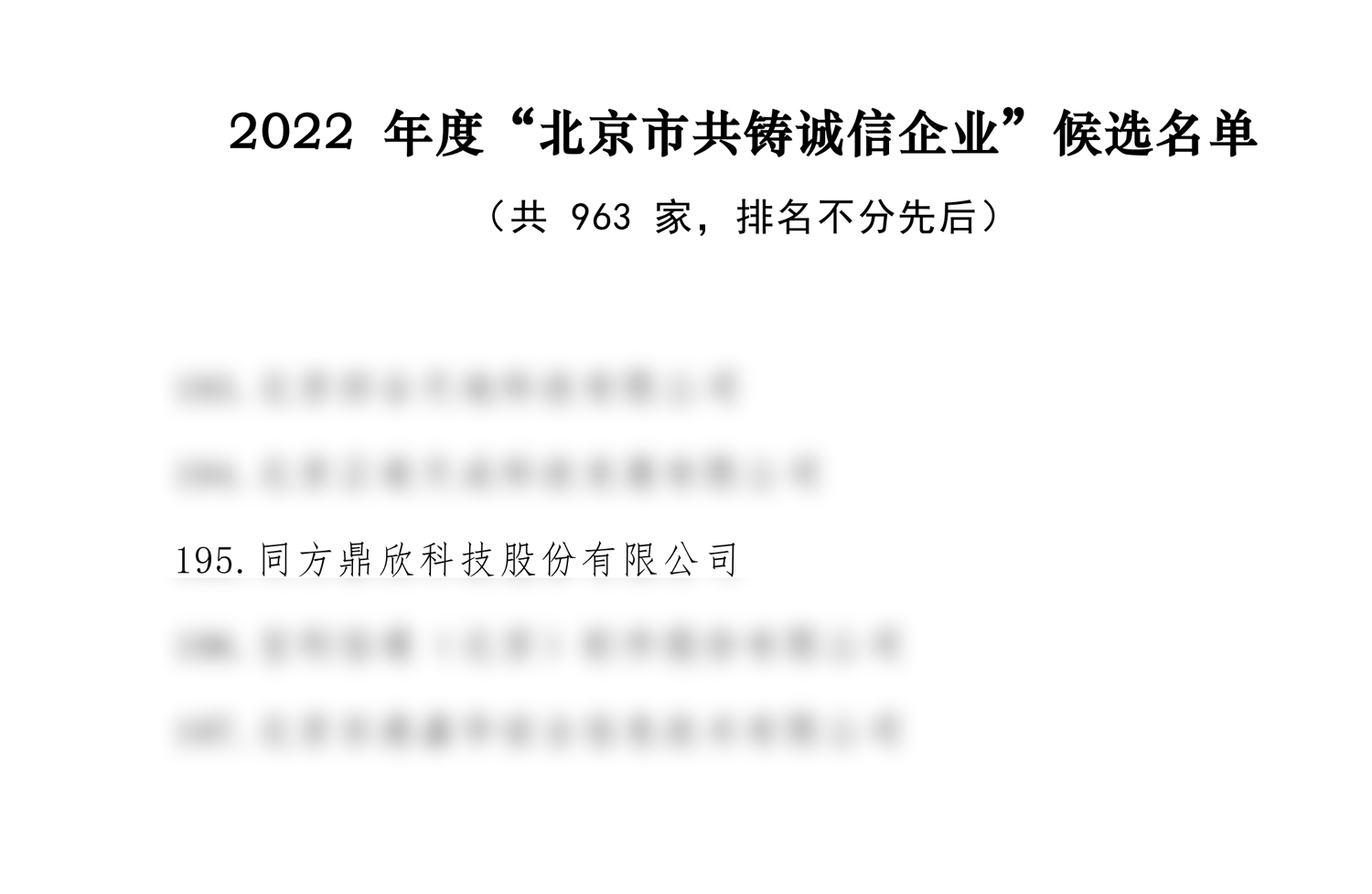 近日,經過評審公示,北京市共鑄誠信活動領導小組辦公室公布了2022年度“北京市共鑄誠信企業”候選名單,本次評審活動圍繞綜合素質、經營管理、誠信表現、文明建設、社會責任五個維度綜合考量。經過層層嚴格審核,作為北京軟件和信息服務業協會推薦企業,同方鼎欣以自身企業綜合實力順利榮登本榜單。
