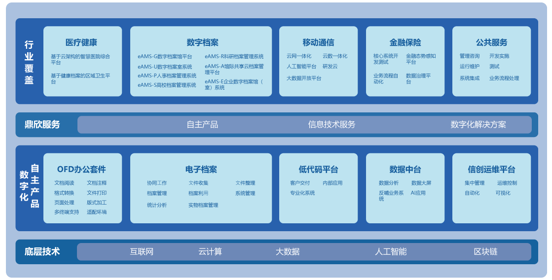 為響應國家數字經濟發展規劃和數字化轉型相關政策,同方鼎欣多年來深耕信創產業,自主研發了一系列可全棧適配國產信創體系的信創產品,可高性能地提供OFD版式文檔、低代碼開發平臺、信創運維平臺、數字檔案、數據中臺等一系列信創產品,協助客戶完成從應用開發、數據管理到服務保障等一系列信創替代工作,幫助客戶實現從規劃咨詢到產品替代再到應用遷移落地,全面助力客戶提升信創背景下的數字化轉型能力。