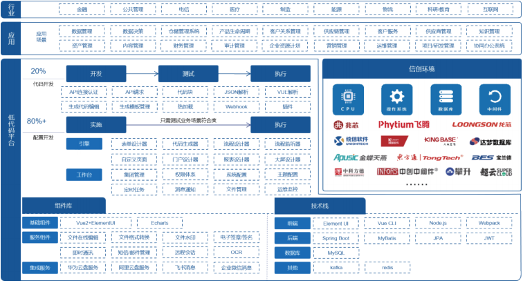 目前,同方鼎欣低代碼平臺已可在軟件開發、系統搭建、原型制定等多個場景中應用,為政府、國防、金融、能源、電信、教育、醫療等領域的數字化服務賦能。并先后與飛騰、兆芯、海光、鯤鵬、騰云等國產CPU,達夢、人大金倉等國產數據庫,東方通、金蝶天燕等國產中間件,以及麒麟、統信等一系列國產化操作系統完成了產品兼容性互認證。憑借優秀的產品表現,同方鼎欣低代碼平臺率先通過了中國電子技術標準化研究院的《低代碼開發平臺能力要求》評價,獲批“低代碼開發平臺能力評價證書”及“低代碼開發平臺能力評價報告”,并于近期入選了中國信通院發布的《高質量數字化轉型產品及服務全景圖(2023上半年度)》。