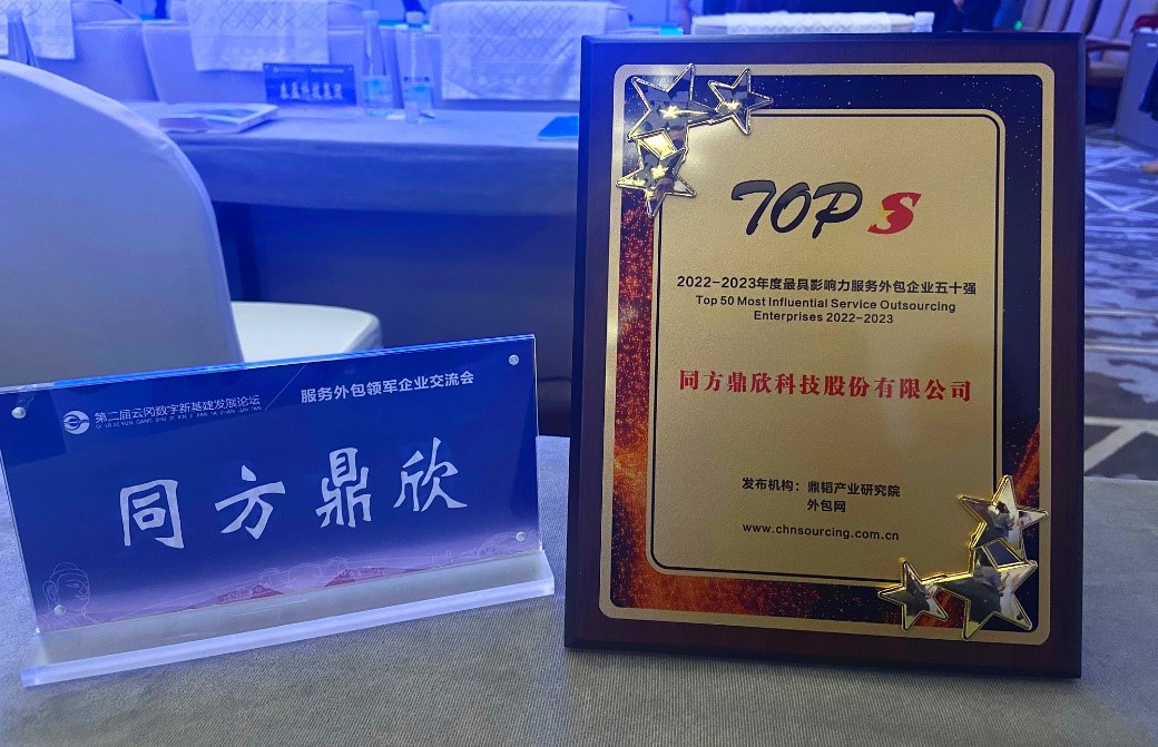 此次大會上,作為在信息產業領域沉浸多年的信息技術服務與數字化解決方案提供商,同方鼎欣憑借在信息產業領域近30年的深耕,以卓越的綜合實力、領先的技術水平、豐富的管理經驗,再度獲頒“2022-2023年度最具影響力服務外包企業五十強”獎項,這也是同方鼎欣連續第6年蟬聯榮獲這一行業大獎。