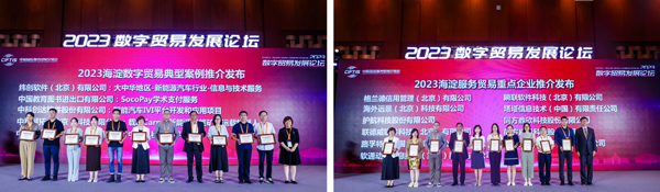 作為中國國際服務貿易交易會的重要分論壇之一,數字貿易發(fā)展論壇自2013年首次舉辦以來,一直秉持國際化、專業(yè)化和平臺化的辦會宗旨,著重于打通上下游產業(yè)資源對接,推進產業(yè)鏈協(xié)同發(fā)展,在跨國界、跨行業(yè)項目對接方面的平臺效果明顯。為進一步鼓勵和支持海淀服務貿易企業(yè)參與國際競爭,擴大出口,促進“一帶一路”國家的合作,在本屆“2023數字貿易發(fā)展論壇”上發(fā)布了“2023服務貿易重點企業(yè)”和“2023數字貿易典型案例”推介名單。