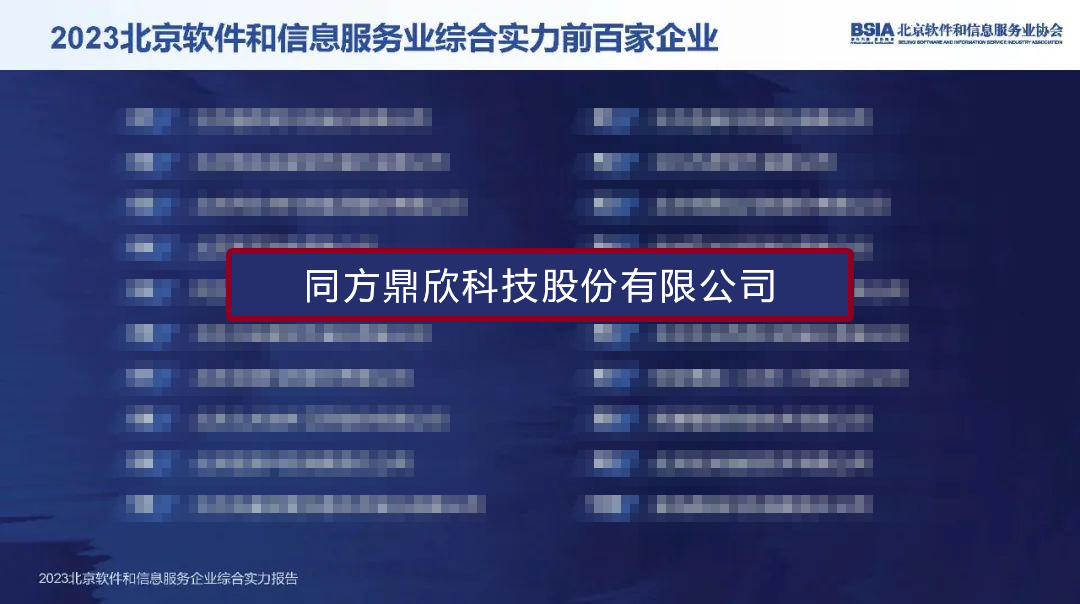 作為國內最早成立的軟件行業協會之一,北京軟件和信息服務業協會(以下簡稱“北京軟協”)始終堅持創新發展、聚合突破、服務共享,著力從企業幫手、產業推手、政府助手三個方面,推動北京軟件產業高質量發展。本次“北京軟件和信息服務企業綜合實力”評價工作參照了中國電子信息行業聯合會的軟件和信息技術服務競爭力企業評價,并以《軟件企業核心競爭力評價標準》(T/BSIA 002-2023)為基礎,圍繞企業經營現狀和發展潛力兩方面展開,量化衡量企業綜合實力。聚焦北京市行業內業務規模大、效益好、自主創新能力強的優秀企業,從而評選出當前北京市行業企業的最強陣容。同方鼎欣在七年間連續蟬聯,且排名穩步上升,充分證明了公司在技術研發實力、行業應用創新等綜合實力方面的優勢。