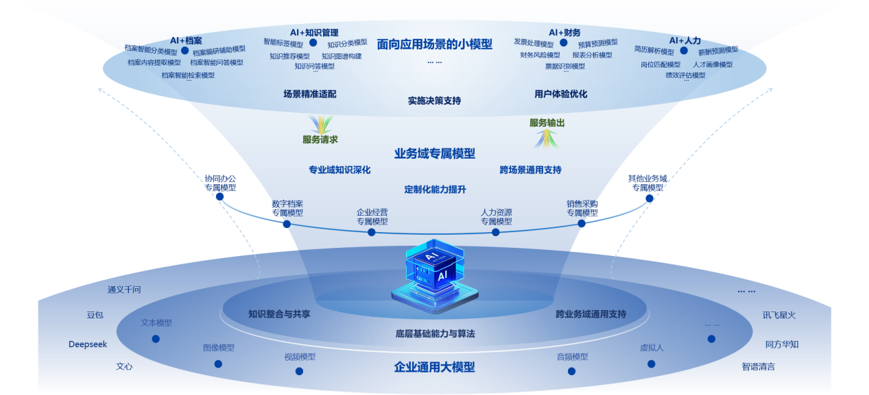 鼎欣科技人工智能架構全景搭建通用、專屬、場景小模型三層模型架構協同賦能
