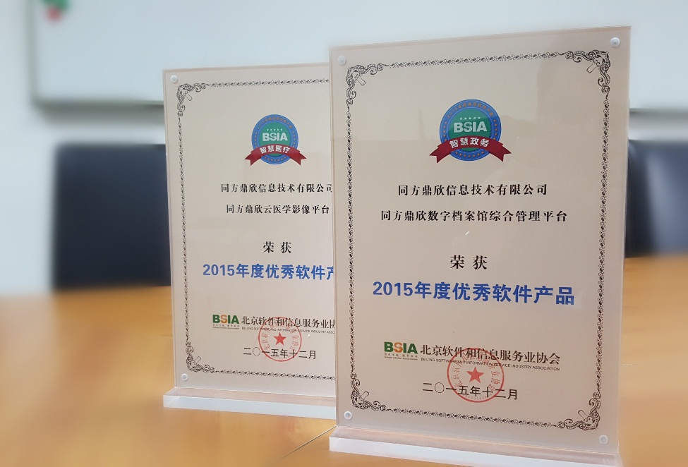 近日,同方鼎欣科技股份有限公司榮獲由北京軟件和信息服務業協會頒發的 “優秀智慧政務軟件“和“優秀智慧醫療軟件”兩個產品獎項。此次評選吸引了近百家優秀的IT企業參評,同方鼎欣攜自主創新的“數字檔案館綜合管理平臺”及“云醫學影像平臺”在評選中脫穎而出。