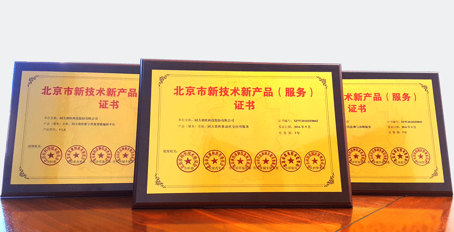 日前,同方鼎欣科技股份有限公司再次榮獲由北京市科學技術委員會、北京市發改委、北京市經信委、北京市住建委、中關村科技園區管委會聯合認定的北京市新技術新產品(服務)證書,所獲證書的產品及服務分別為“同方鼎欣移動社交應用服務”、“同方鼎欣風機在線監測與診斷服務”、“同方鼎欣數字檔案智能編研平臺”。