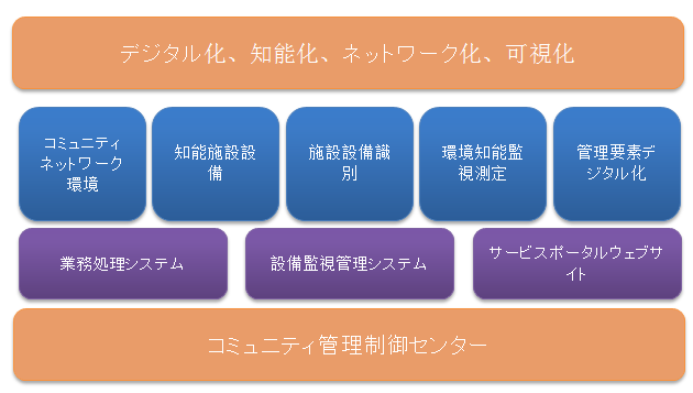 スマートコミュニティは環(huán)境層、データ層、サポートプラットフォーム層、応用層を含める総合管理システムであり、情報(bào)ネットワーク、自動(dòng)化制御、知能識(shí)別などの技術(shù)を利用して、コミュニティ要素のデジタル化、施設(shè)設(shè)備の知能化、情報(bào)リソースのネット化、日常管理の可視化を?qū)g現(xiàn)します。