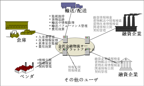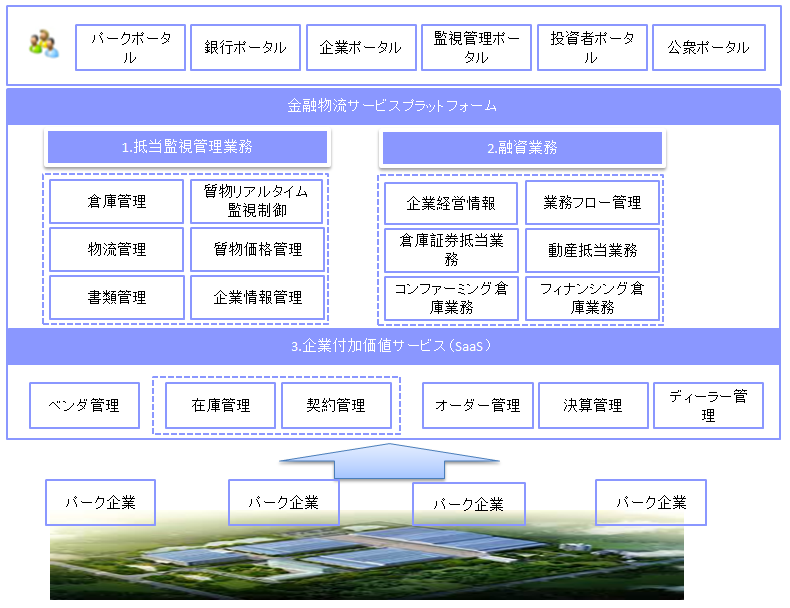 金沢物流グループは中小企業が貸付融資の際に申請期間が長い、承認審査フローが不透明、監督管理情報通知が遅いなどの問題に対して、金融物流サービスプラットフォームを作成しました。本プラットフォームは金融機構、商業貿易製造企業、監督管理企業、保険評価機構などの企業機能を結合して、「融資サービス、物流サービス、監督管理サービス、情報サービス」を一體化にしたワンストップ式の総合サービスプラットフォームを作りました。サプライチェーンにある商業貿易製造企業はプラットフォームにおいて原材料や製品を質物として、第三者物流會社の監督管理を通して、製品や材料を金融機構に抵當して、融資を取得します。金融機構はオフラインで企業融資資格を審査して、プラットフォームでオンラインで融資申請承認、質物在庫検査、質物価格の動的調整、監督管理情報の取得を行います。監督管理企業はプラットフォームで質物在庫明細を管理して、質物在庫監視をチェックして、質物価格の動きをトレースします。金融物流サービスプラットフォームは業界を跨いだ相互発展ができる新しい業務形態を創造して、中小ディーラーの資金繰り問題を解決し、金融機構資金利用率を向上し、物流企業の新しい市場を開拓しました。