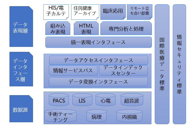 同方鼎欣映像情報インテグレーションプラットフォームはDICOMなどの複數のプロトコルをサポートして、違う映像科のデータを互いに集積して、放射線、超音波、病理、內視鏡などの映像情報化統一保存とインテグレーション管理の問題を解決して、他の情報管理システム、例えば、HIS、電子カルテへ統一的なアクセスインタフェースを提供します。